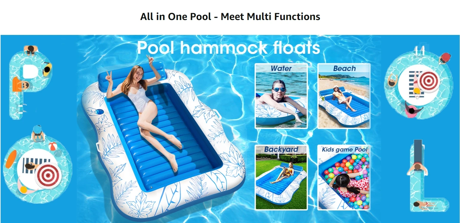【Funny Pool Party - Perfect for summer】Invite your friends, family members and lovers to have a outdoor summer party in the swimming pool, beach, lake, river,etc. The spacious and thick floating bed is also very safe for children to play.