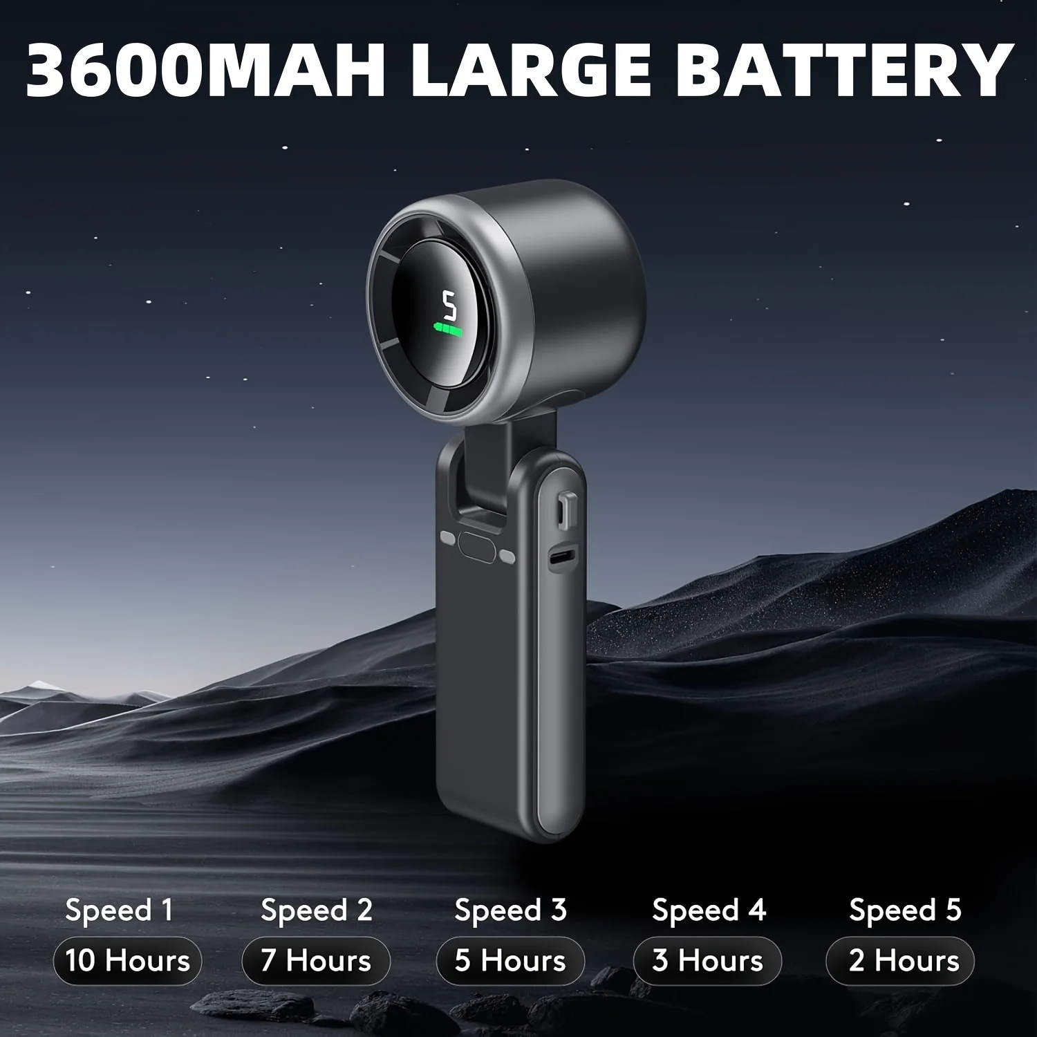 Product Features: Compact and Portable, Angle Adjustable, 5-speed Wind Speed