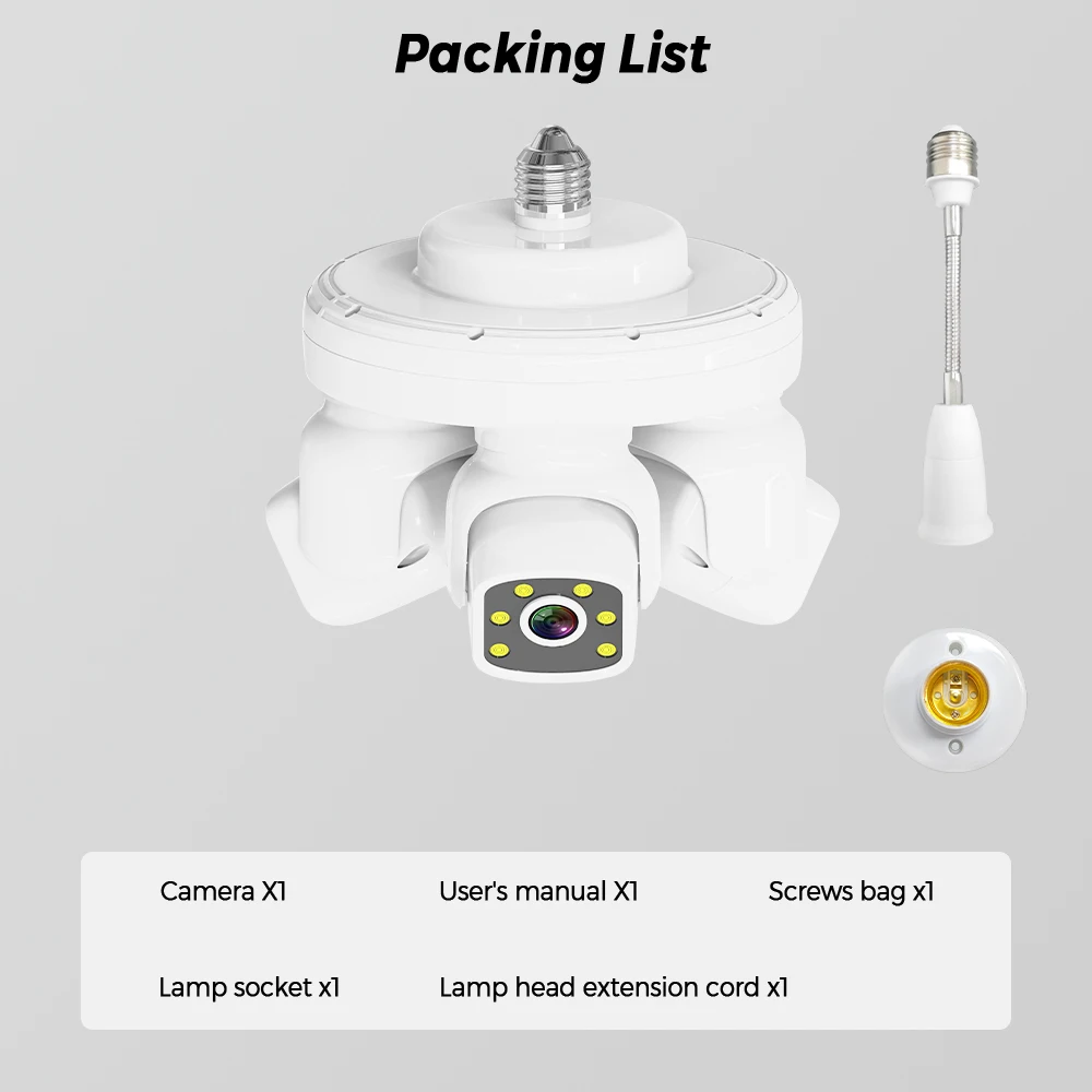 Smart 15MP Triple-Lens Bulb Security Camera 360° PTZ Auto Tracking 15MP 9MP Night Vision WiFi Waterproof CCTV 3-Screen View