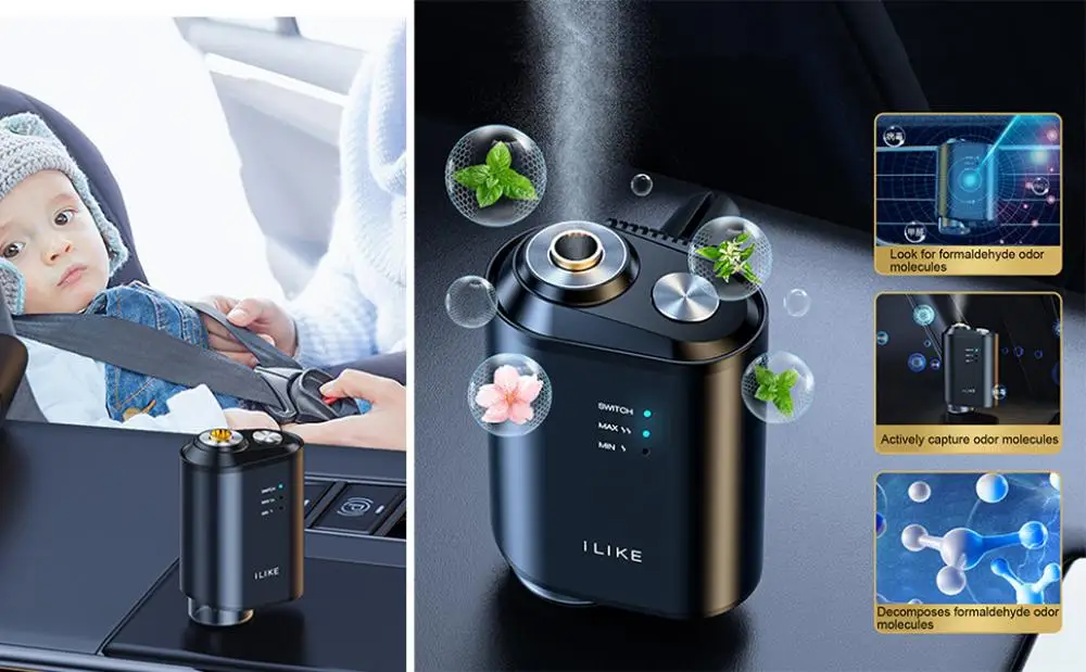The smart air freshener features three adjustable functions that automatically start and shut down, intelligently adjusting the fragrance based on the car's air conditioning and ambient light conditions.
