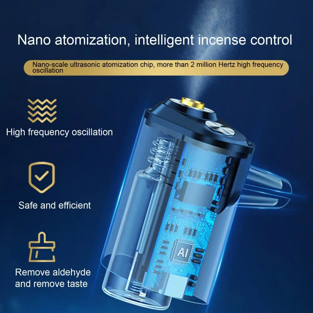 Say goodbye to unwanted odors as this smart air freshener effortlessly eliminates them, leaving you feeling refreshed. Its waterless design ensures a mess-free experience, making it ideal for use in cars, bedrooms, living rooms, offices, and more. Upgrade your surroundings with this versatile and convenient car aromatherapy solution.